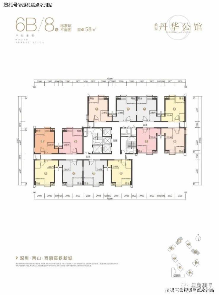 项目南山西丽留仙洞总部基地的丹华公馆。总占地面积4万方,围合式花园社区,总建筑面积32万方,容积率5.51,由8栋住宅和一栋幼儿园组成,2025年6月精装交付。项目共3019户,其中58平复式2424户,101平大平层595户(物以稀为贵),总车位数2000个,车位比1:0.66。