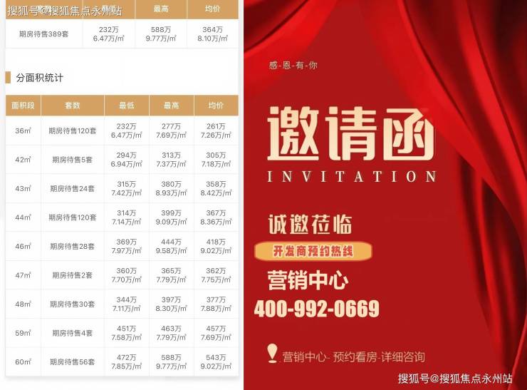 公寓:36-60㎡一至两房(总价200万起),精装交付,通燃气,单价为住宅的6-7折(6-8万/㎡)。