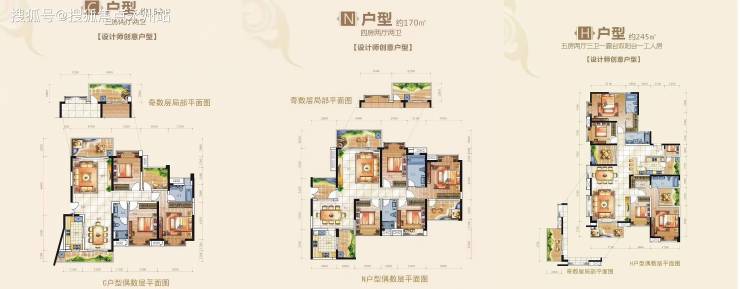 230-490㎡顶复产品:空间设计:复式结构,一层为公共活动区(客厅、餐厅、中西厨),二层为休息区(3-4 间卧室 + 书房);部分户型带空中花园及无边际泳池,顶层可搭建阳光房。