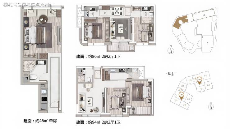 A座:建筑面积约160-220㎡2-3房(南北通透,专梯入户)