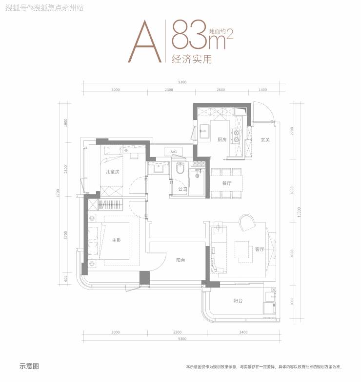 主力产品:83-120㎡精装 3-4 房,得房率约 85%(含赠送面积),空间利用率高于区域平均水平。