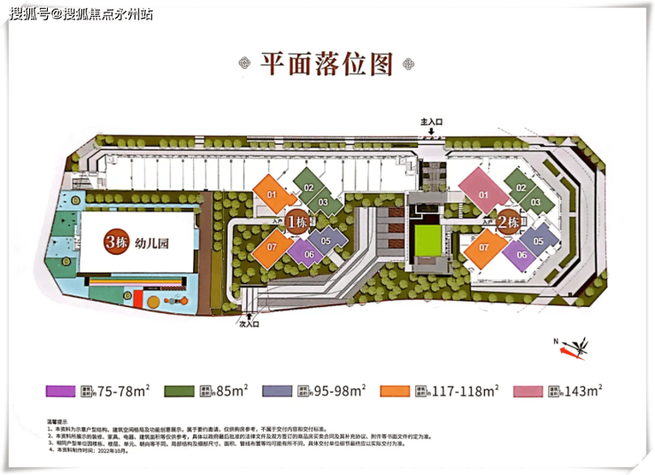 项目占地不大,仅9866.58㎡,由3栋建筑组成,其中1、2栋为商住楼共42层;3栋为6班幼儿园4层。规划总户数448户,其中户型套内建筑面积<90平410户。除去回迁,还剩余300多套。