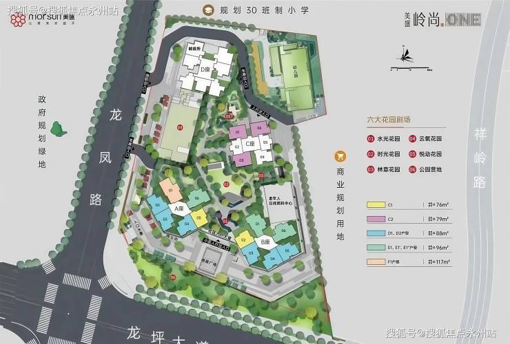 美盛岭尚苑在售建面约76-96㎡精装3-4房,折后总价230万起,单价区间2.5-3.03万/㎡