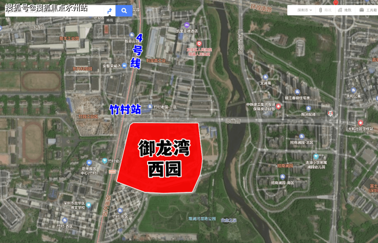御龙湾西园项目原为龙华区福城街道竹村城市更新项目,地块位于深圳市龙华区福城街道观澜大道与翠幽路交汇处东南侧。
