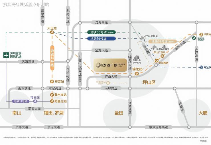 高速路网:紧邻坪山大道与锦龙大道双主干道,连接坪盐通道(15分钟至盐田)、南坪快速(1小时至南山科技园)、东部过境高速(在建),高效覆盖全城。