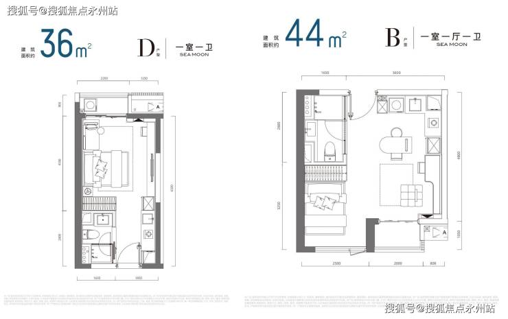 约44㎡:南向瞰海,291—371万