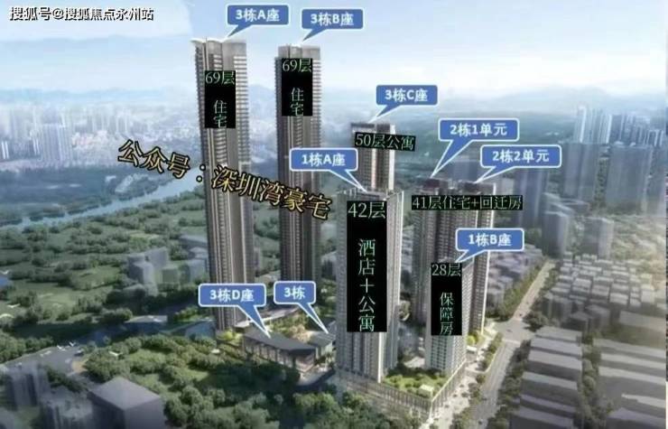 总栋数:8栋(1A栋42层酒店+公寓、1B栋28层保障房,2栋1/2单元41层住宅,3A/3B栋69层住宅;3C栋50层公寓、3D栋4层公寓)