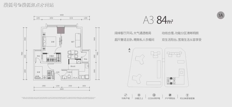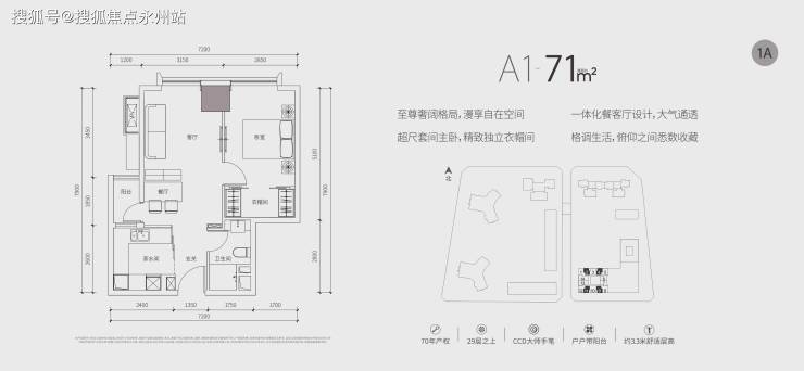 (公寓)推售约67-87㎡1-2房,均位于29层之上高区,享百米以上景观。70年产权,户户带阳台,拥有3.3m超舒适层高。室内公区、样板房均由CCD香港郑中设计事务所设计,将高级定制融入每一寸居住空间