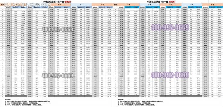 开盘推出9.18 折综合折扣,折后均价约8.46万/㎡,折后单价7.44-9.3万/㎡,总价700-1338万/套。具体户型价格如下: