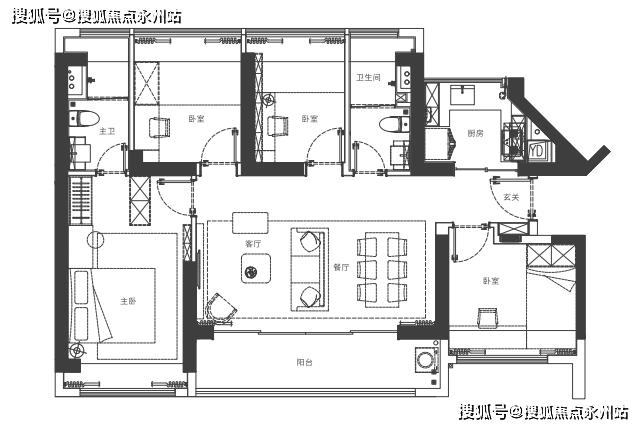 【建面约96㎡】 家政阳台定位,6人位餐厅满足多人就餐,主卧独立卫生间