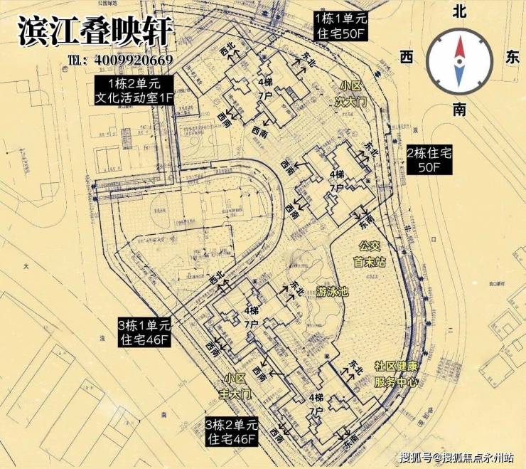 叠映轩(南地块):纯商品房地块,占地面积约2.13万㎡,容积率5.84,4栋46-50层住宅,共1312户(4梯7户),车位1050个(配比1:0.8),居住人群纯粹,适合注重居住私密性的刚需购房者。