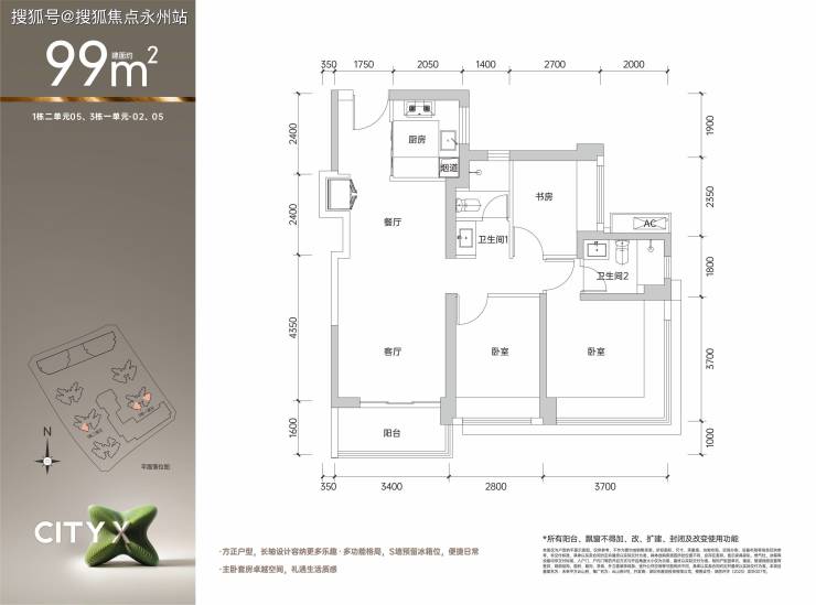 改善客户丨追求性价比:选择3栋1单元98㎡三房(折后389万起),得房率更高。