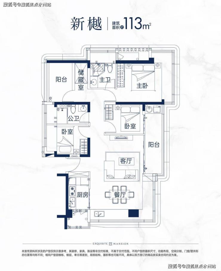 项目主推户型为91-123㎡的 3-4房,其新规户型主要有以下特点:
