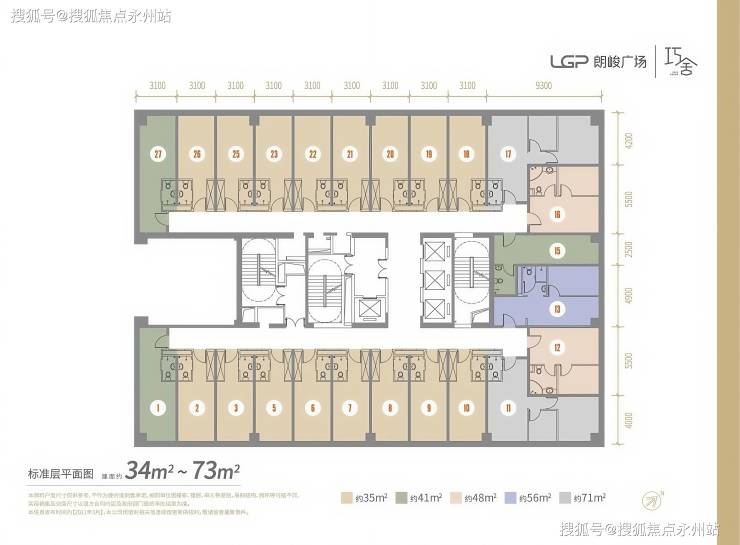 写字楼信息丨在售产品类型丨普通写字楼:出售面积300㎡起售,特价1.78万/㎡起,整层约1000㎡,均价1.5万-2.5万/㎡。