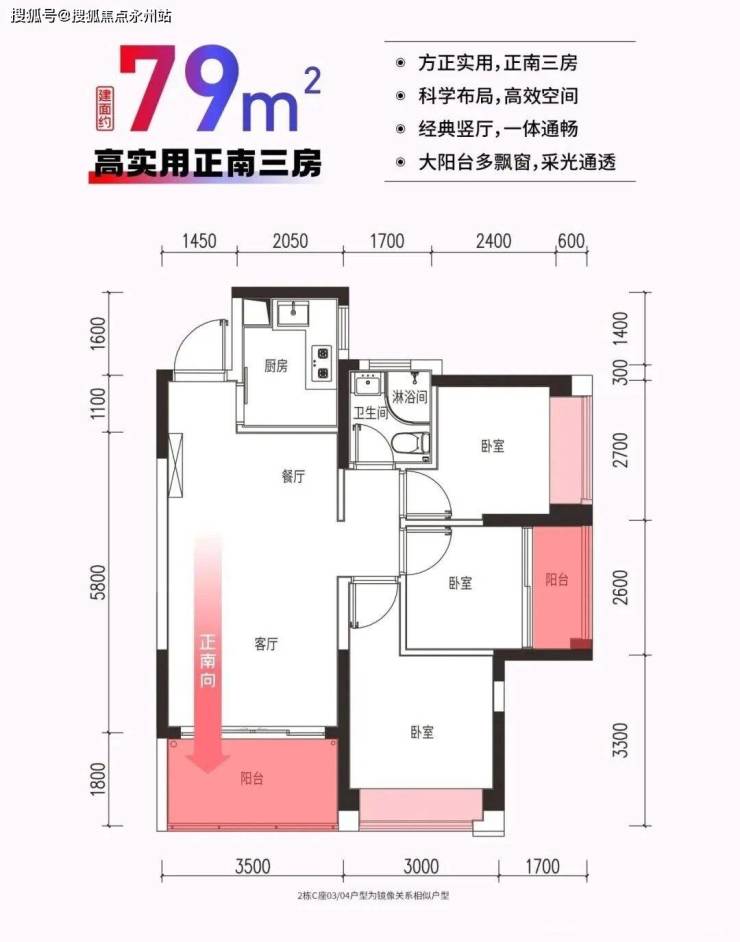78-79㎡三房一卫:折后总价314万-322万元(单价约4.03万-4.13万元/㎡)