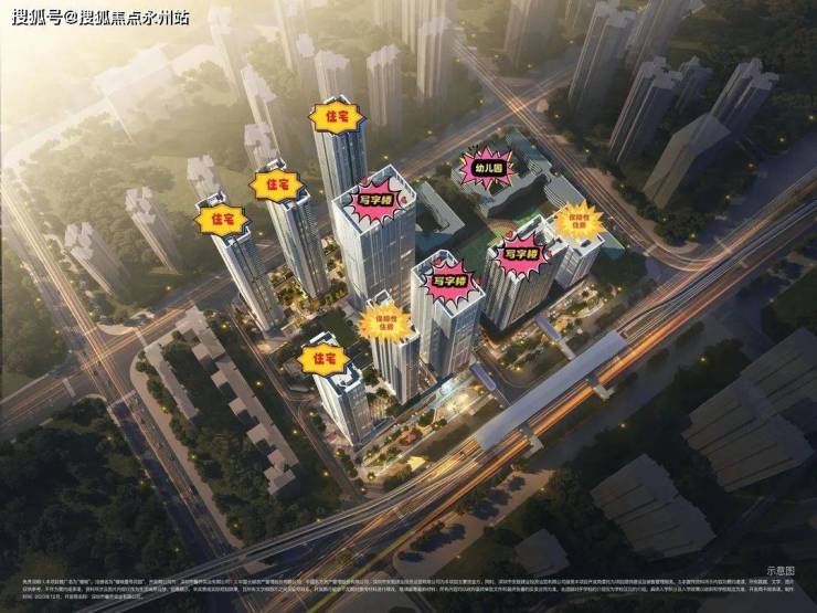 项目由4栋45F超高层住宅、3栋40F、30F写字楼、1栋45F保障房、1栋3F幼儿园以及一所九年制学校组成,未来将建设成为集住宅、办公商业为一体近40万㎡的TOD城市商住综合体项目。