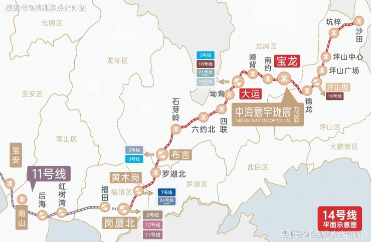 项目临近14号地铁线“宝龙站”,配建有公交首末站,可坐公交车直达地铁站,该线路是从坪山沙田开往福田岗夏北的快速线,设计时速120公里,3站到大运,8站到布吉,9站到罗湖,11站到福田岗厦北,用时41分钟。