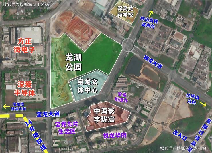 项目位于龙岗区宝龙街道宝龙大道与夏连路交汇处东南侧,位于宝龙科技城核心区域,龙岗宝龙科技城是深圳市国家级高新区核心片区,定位“低碳智造核”,聚焦ICT、AIoT、新能源等千亿级产业集群,汇聚比亚迪精密、海能达等405家高新企业,形成“三山两水一球会”生态格局,并依托地铁14号线实现30分钟直达市中心。