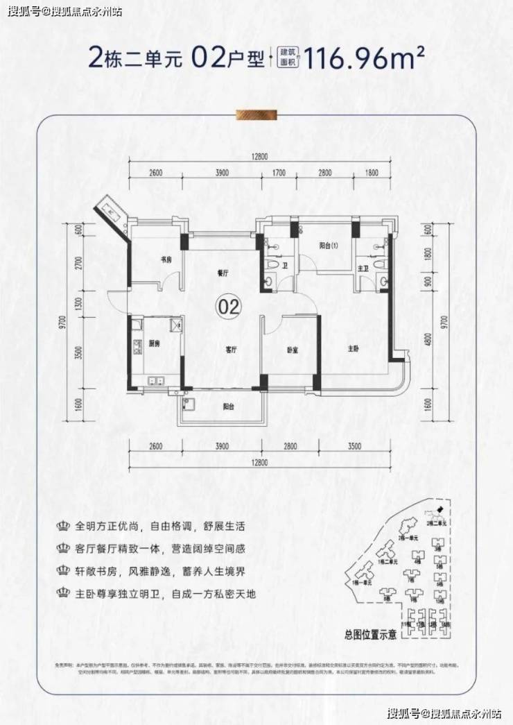 项目户型介绍:社区产品面积段包括112-116-120㎡4房2卫,195㎡4+1房4卫,本次推出116户型4房2卫