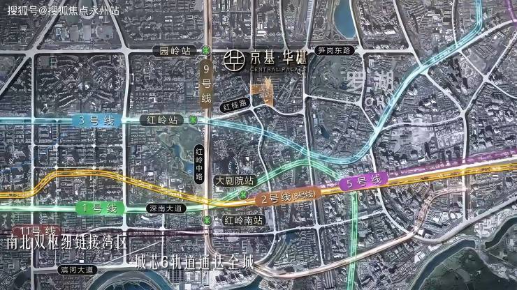 轨道交通:3/9号线红岭站(700米)、9号线园岭站(1公里)、17号线大塘龙站(1.1公里)及1/3号线老街站(1.2公里)环绕,未来还将接入5号线西延线和11号线二期,形成六线交汇。