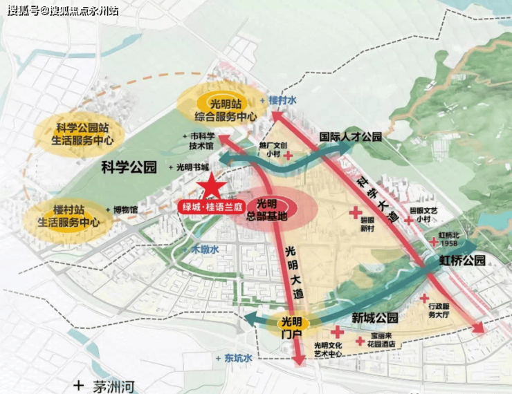 休闲配套:项目旁边是规划中的光明“绿肺”——科学公园占地约216公顷,是深圳湾公园的两倍大,项目总投资约15亿元,2023年10月完工,周边还坐拥狮山公园、约9.4万㎡的东周文化公园、约10万㎡的开明公园、约56万㎡的新城公园。