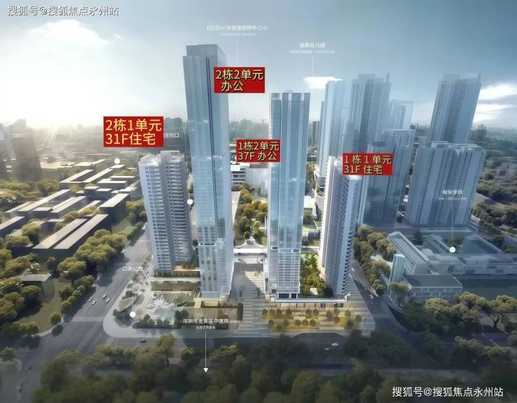 项目总占地面积约1.13万㎡,总建筑面积约14.37万㎡,计容建筑面积约10.95万㎡,容积率9.69,绿化率30.01%,共由2栋31层高住宅组成,分别是1栋1单元/2栋1单元,另外还有2栋31-36层高的写字楼。