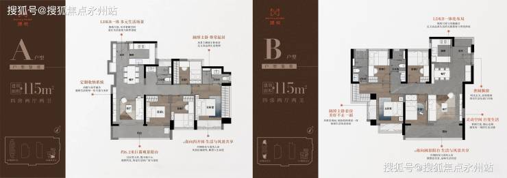 115㎡四房两卫总价:830万~932万丨单价:7.17万~8.04万/㎡