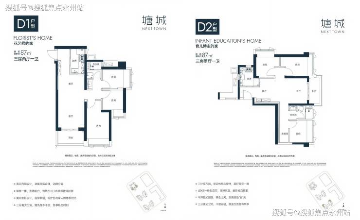 87㎡三房一卫(D1/D2 户型)—— 首改家庭性价比之选