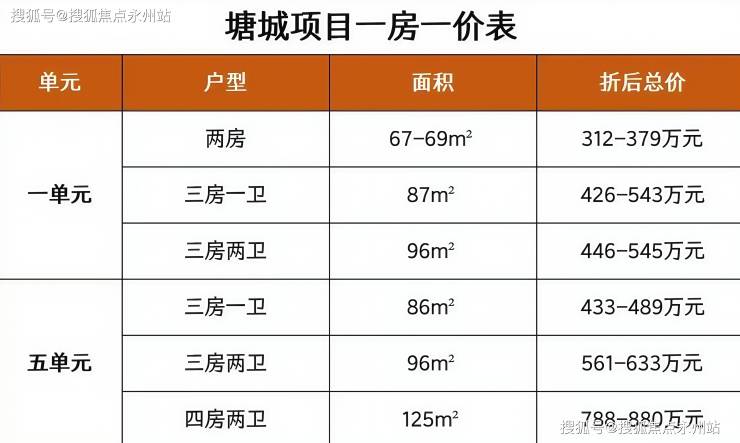 5单元(超高层住宅)主力户型:96㎡三房、117㎡四房、125㎡四房,折后单价5.6万-6.25万/㎡(备案均价基础上叠加 89 折优惠)