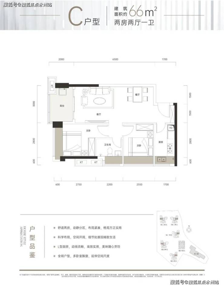 66㎡的2房2厅1卫,折后总价约140万/套起,折后单价约2.15万/㎡