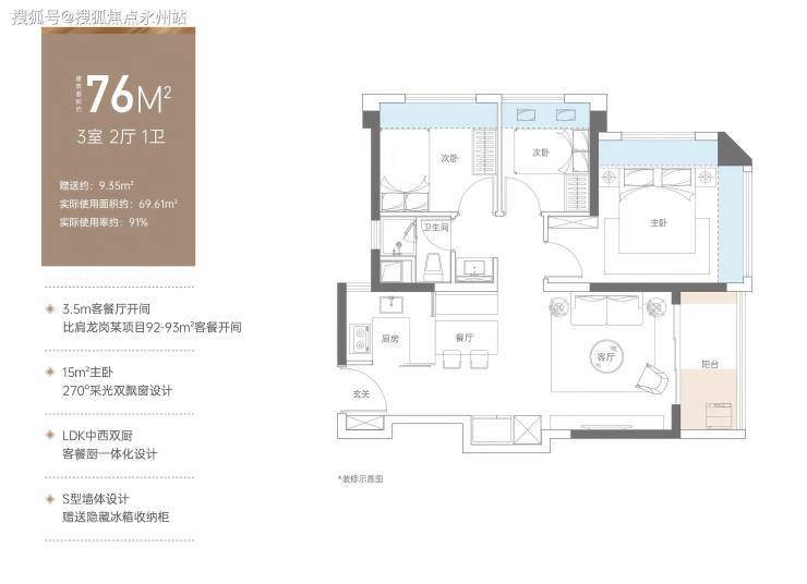 76㎡三房两厅一卫