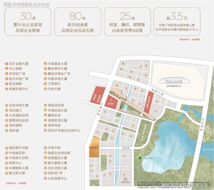 而后海在深圳湾中是当之无愧的黄金地段,是中国总部企业最为密集区域之一,目前约80家总部企业,500强进驻企业超20家(中国华润大厦、阿里巴巴、中建科工大厦、字节跳动、中铁南方等),总投资规模超1000亿(强度达到286亿/平方公里),堪称深圳城市名片区域、土地价值最稀缺区域、准入门槛最高区域、配套最顶级醇熟区域。