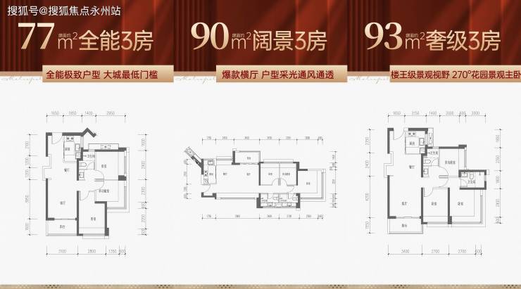 全生命周期户型:从77㎡紧凑3房到93㎡舒适3房,覆盖单身、三口之家需求,部分户型可改造为多功能房或书房。