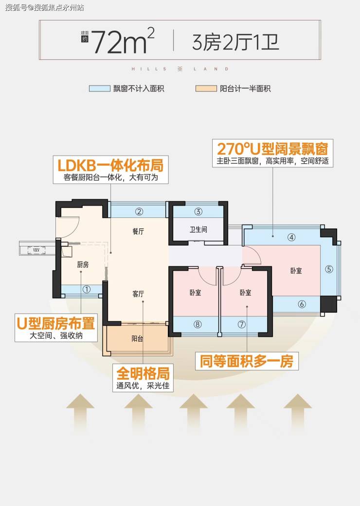 赠送后得房率去到100%,同时凸窗部分做到了80CM(旧规60CM)。
