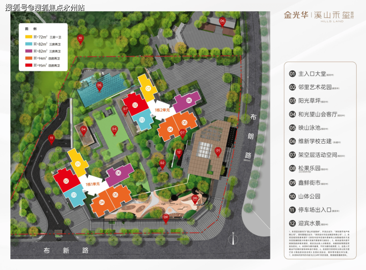 「金光华溪山禾玺」大大小小地块共20个,主要为二类居住用地、商业用地、教育设施用地、公园绿地等,共分为4期开发建设。