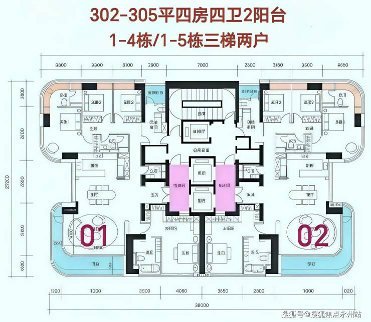 核心配置:3梯2户配置,D栋49层182.77米、E栋43层161.77米,层高3.5米,专梯入户设计,赠送私用电梯厅。