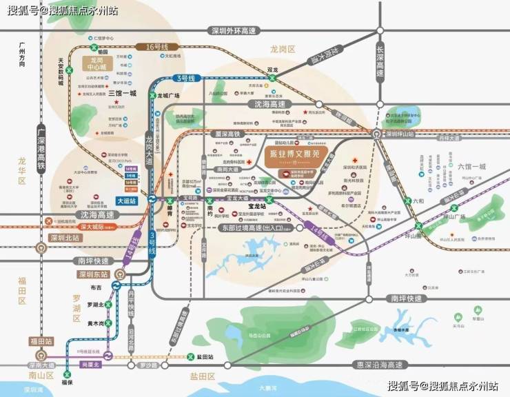 16号线坪山站 :坪山站升级“坪山综合交通枢纽”,16号线、高铁、深大城际(宝安机场——坪山,在建)三轨交汇