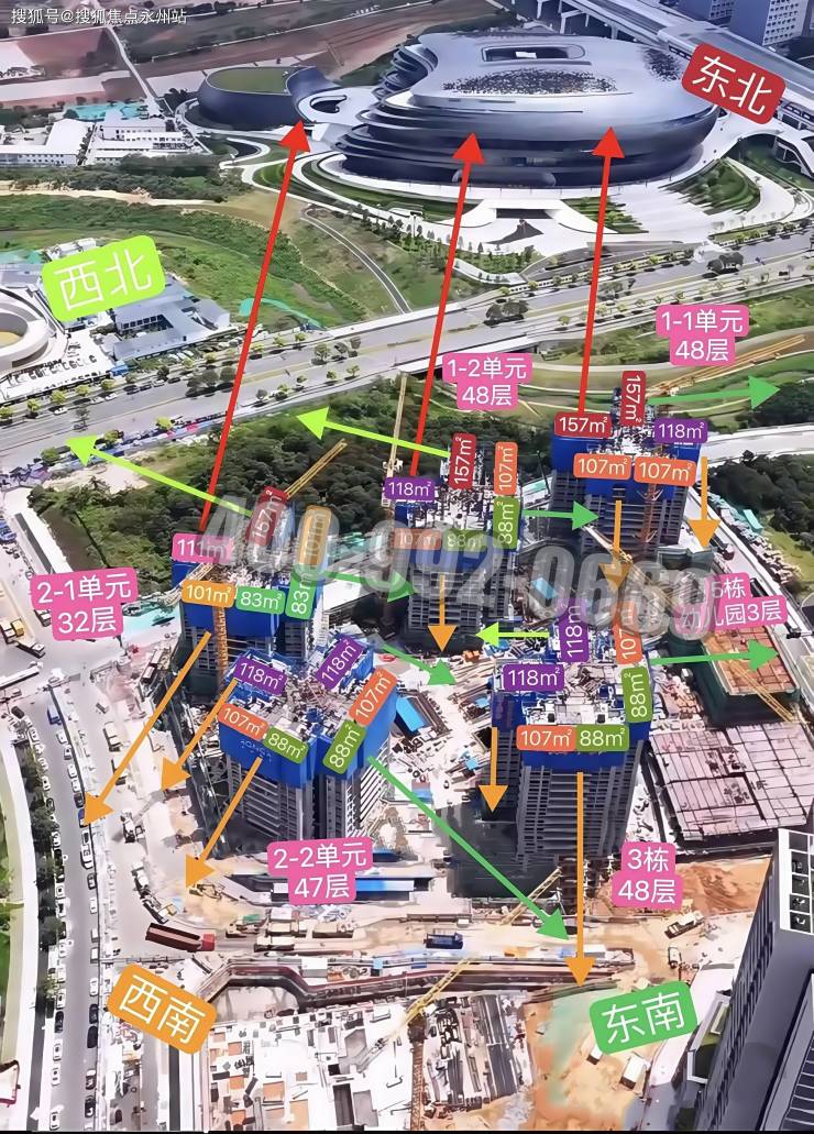 景观朝向:东北向为主,前排无遮挡,可俯瞰深圳科技馆及科学公园。