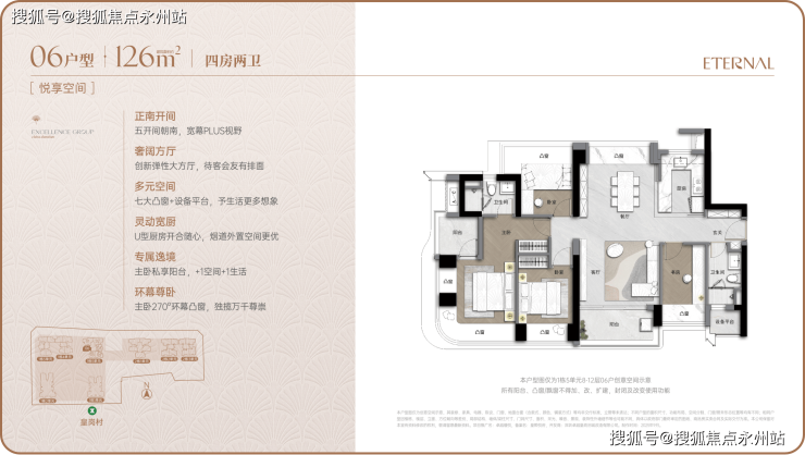 270° 环幕视野:所有主卧均配备 270° 环幕凸窗,不仅提升了采光效果,还带来了极佳的观景体验,部分户型可实现三面采光。