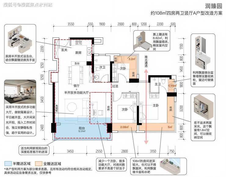 【润臻园】首开1栋26F小高层约89-108㎡的3-4房户型,实际使用率加赠送面积不同户型有约95-106%,在目前新规产品中,89E户型算是当下光明较高的存在,其它户型并没有突出点。