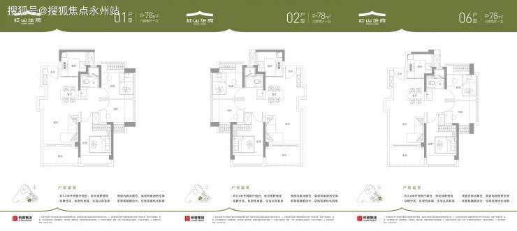 78㎡三房(01/02/06户型):东南 / 西南朝向,功能全优生