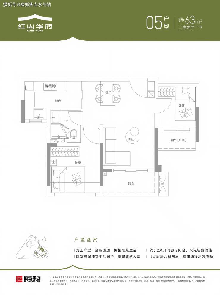 63㎡两房(05户型):东北朝向,紧凑实用派