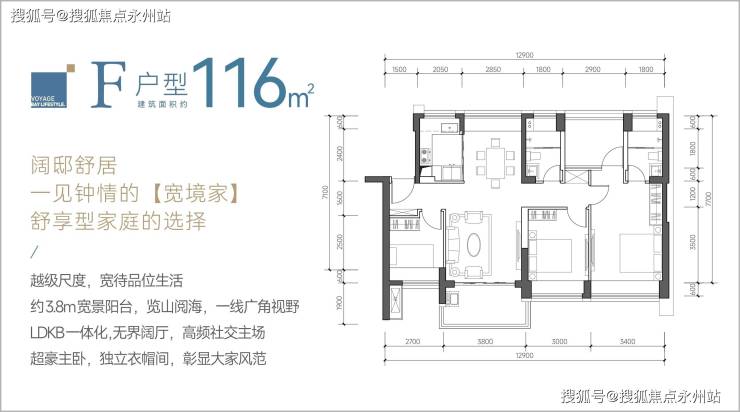 横厅设计:客厅开间4.1米,南北通透,270°环幕视野,得房率约92.01%(含赠送)。