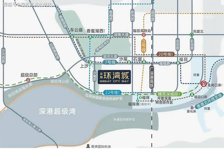 位于福田南大金沙板块,紧邻深港科创合作区与香蜜湖新金融中心,坐享福田CBD+环湾双核资源。