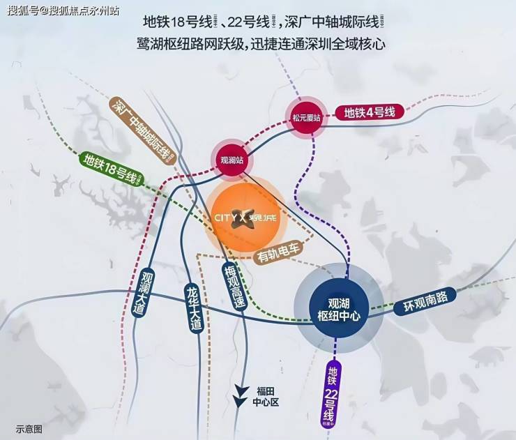 地铁22号线(在建):预计2028年通车,鹭湖北站距项目约800米,可快速换乘至南山、光明科学城,实现「福田-观澜45分钟通勤圈」。