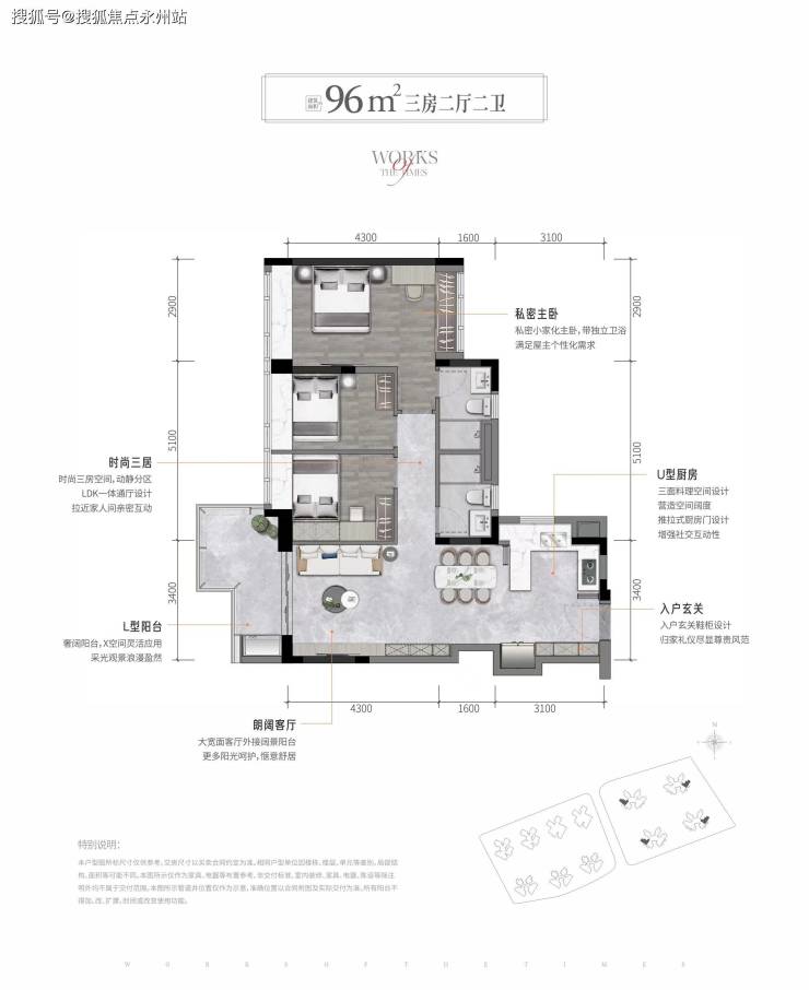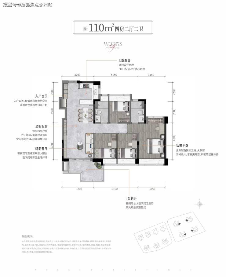 卓越星奕府推售产品为建筑面积约85-110平3房-4房户型。