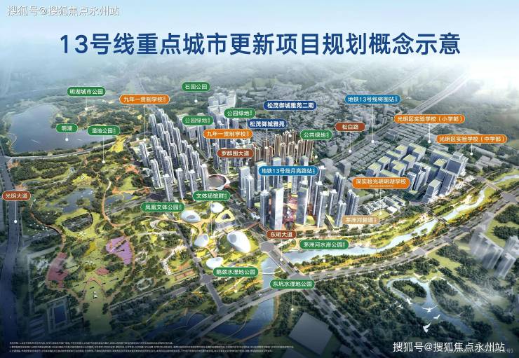 13号线重点更新项目(在建),总投资约420亿元,其体量约为光明城站TOD的25倍。将结合13号线月亮路站塑造、城市蓝绿公园网络提升、产城空间更新,无限链接生产、生活、生态要素,建设成光明区“三生融合示范区”。