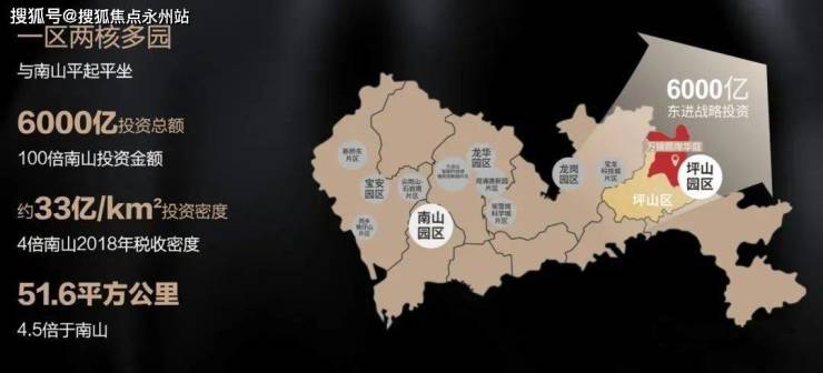 世界一流科技园:坪山区是深圳专项政策支持区域,与光明、河套三足鼎立;规划约51.6k㎡坪山高新区,相当6个南山高新区,三大千亿级产业、四大国家级产业基地集群,预计2030年总产值将达10000亿,擎动湾区经济腾飞。
