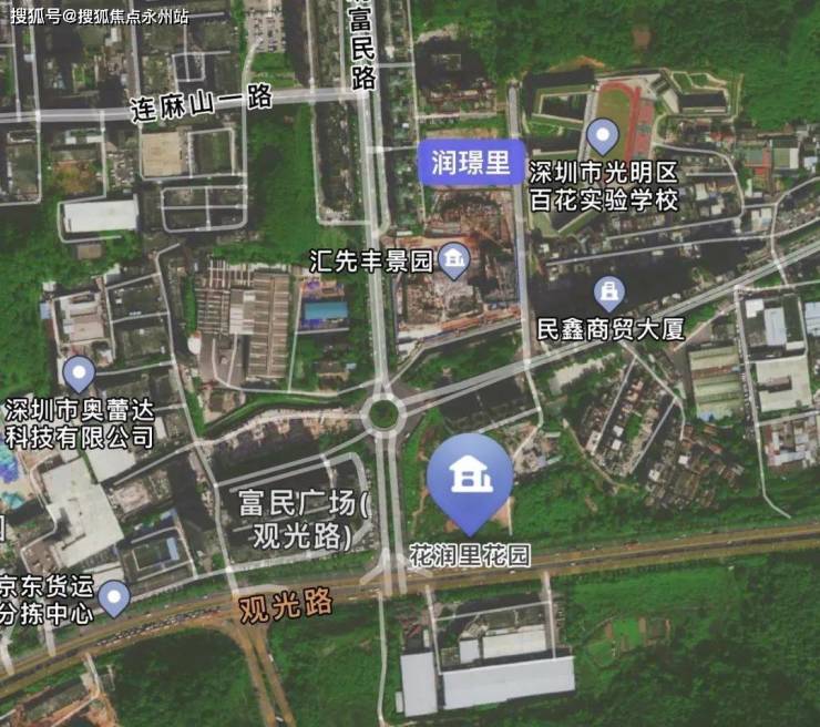 项目位于光明街道白花社区,该项目为光明街道白花社区征地返还用地(地块三)项目,地块位于光明区光明街道白花大道北侧、富民大道东侧,由深圳市盈润来投资发展有限公司开发。项目隔壁就是目前正在销售的项目——花润里。