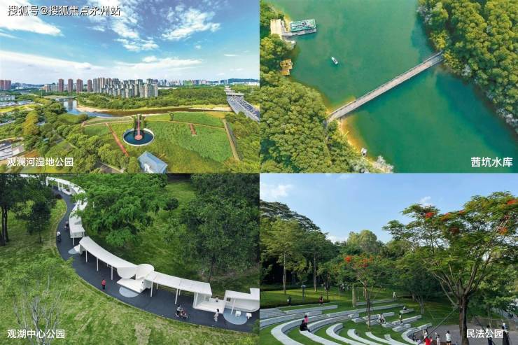 生态公园方面,观澜河湿地公园、茜坑水库、观湖中心公园、民法公园、九龙山公园等。